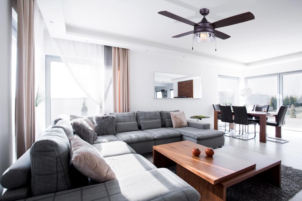 CFan 48", MILL ORB, 4 Reversible Blade: Walnut / Medium Maple, Seeded Glass, Downrod Mount
