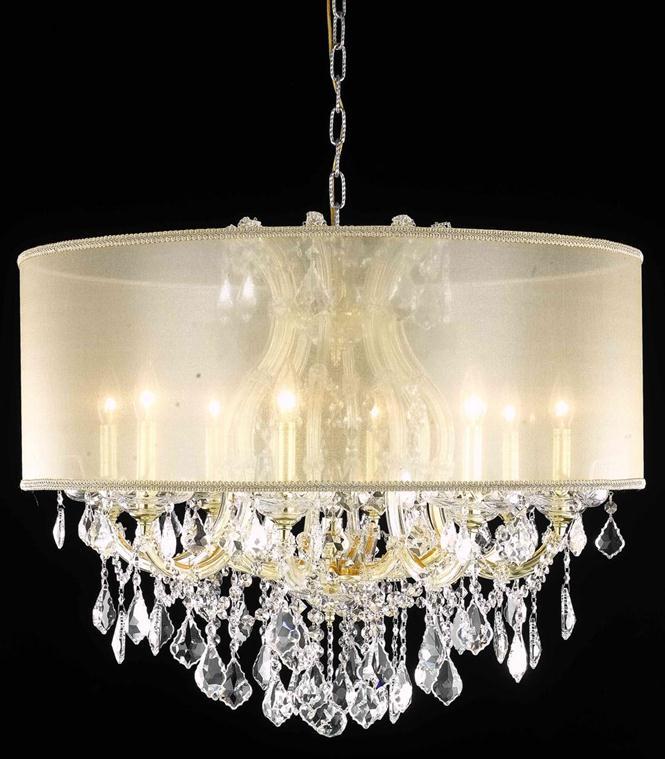 2800 Maria Theresa Collection Hanging Fixture w/ Gold Round Shade D30in H26in Lt:8+1 Gold Finish (Swarovski Spectra Crystal)