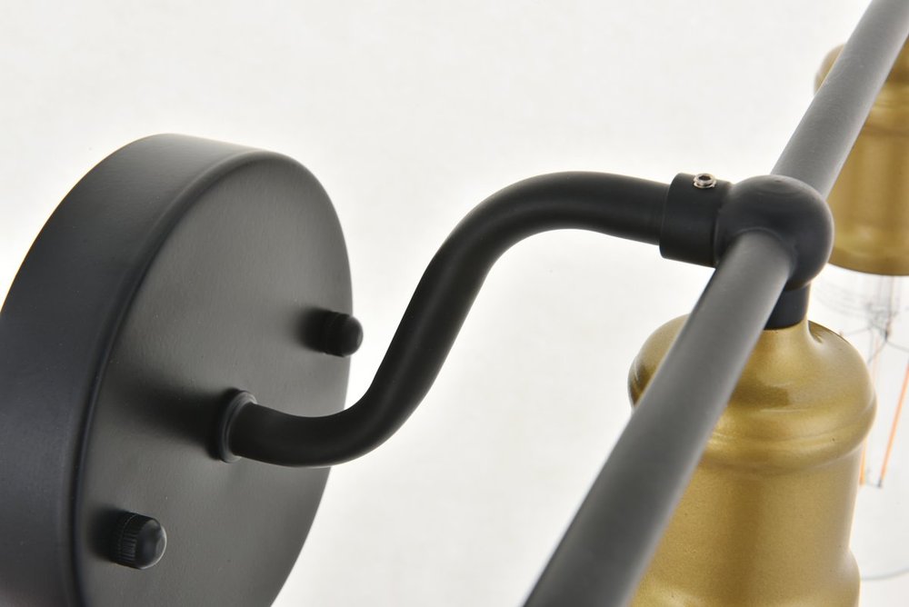 The classical elegance of the Serif collection wall lamp in a brass and black finish brings graceful allure. The arms--reminiscent of a classical font-- supports the 3 lights that emit a reassuring brilliance, and its gentle presence makes it a wonderful fixture to greet your guests at the entry way, illuminate your nightstands in the bedrooms, or shine in the powder room.