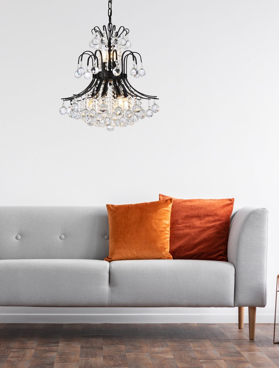 A treasure trove of glittering crystals, Toureg collection pendant lamps are generous with their sparkle. Stately curved steel arms and frame form an opulent flared shape available in black, chrome or gold finishes. Faceted clear crystal balls and crystal octagons offer a variety of options to choose from. Certain to be the center of attention in the dining room, living room, bedroom, or stairwell.