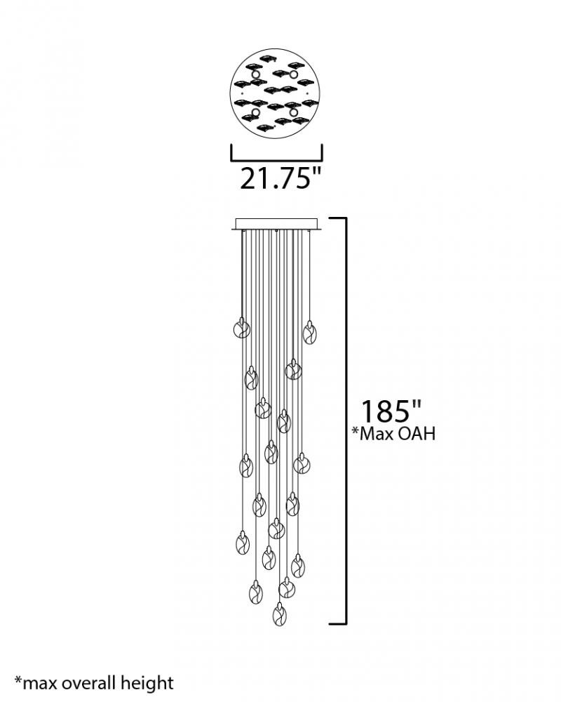 As if naturally formed from the ebbing shores of a riverbed, smooth and irregularly shaped crystal pebbles are suspended by cast metal clasps in a Polished Gold finish. Discreetly illuminated by concealed LED light sources within the clasps, additional dow