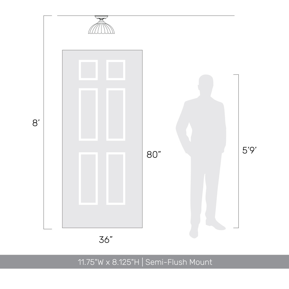 Bring timeless elegance into your home with the Golden Lighting Audra 1-light 7in Semi-Flush Mount. Featuring a glass shade and a Chrome frame, it casts a vibrant and welcoming atmosphere. The clear glass shade offers brilliant, unobstructed light, polished to a high-gloss shine to beautifully highlight both the bulb and the fixture design. This versatile shade complements a broad range of styles, making it an ideal choice for modern and classic settings alike. The Polished Chrome finish provides a crisp, clean aesthetic with a reflective surface that adds brightness and sophistication to your decor. Its durability and easy maintenance make it a practical addition to your home. Designed for a blend of style and function, this fixture is damp location rated, making it suitable for areas with occasional moisture, such as bathrooms and covered porches. Perfect for entryways, kitchens, and mid-height ceilings, it effortlessly enhances any space. Overall Dimensions: 6.88"W x 8"H x 6.88"D. Requires 1 E26 Medium base bulb (not included) with a maximum wattage of 60. Experience opulent lighting with the Audra collection!