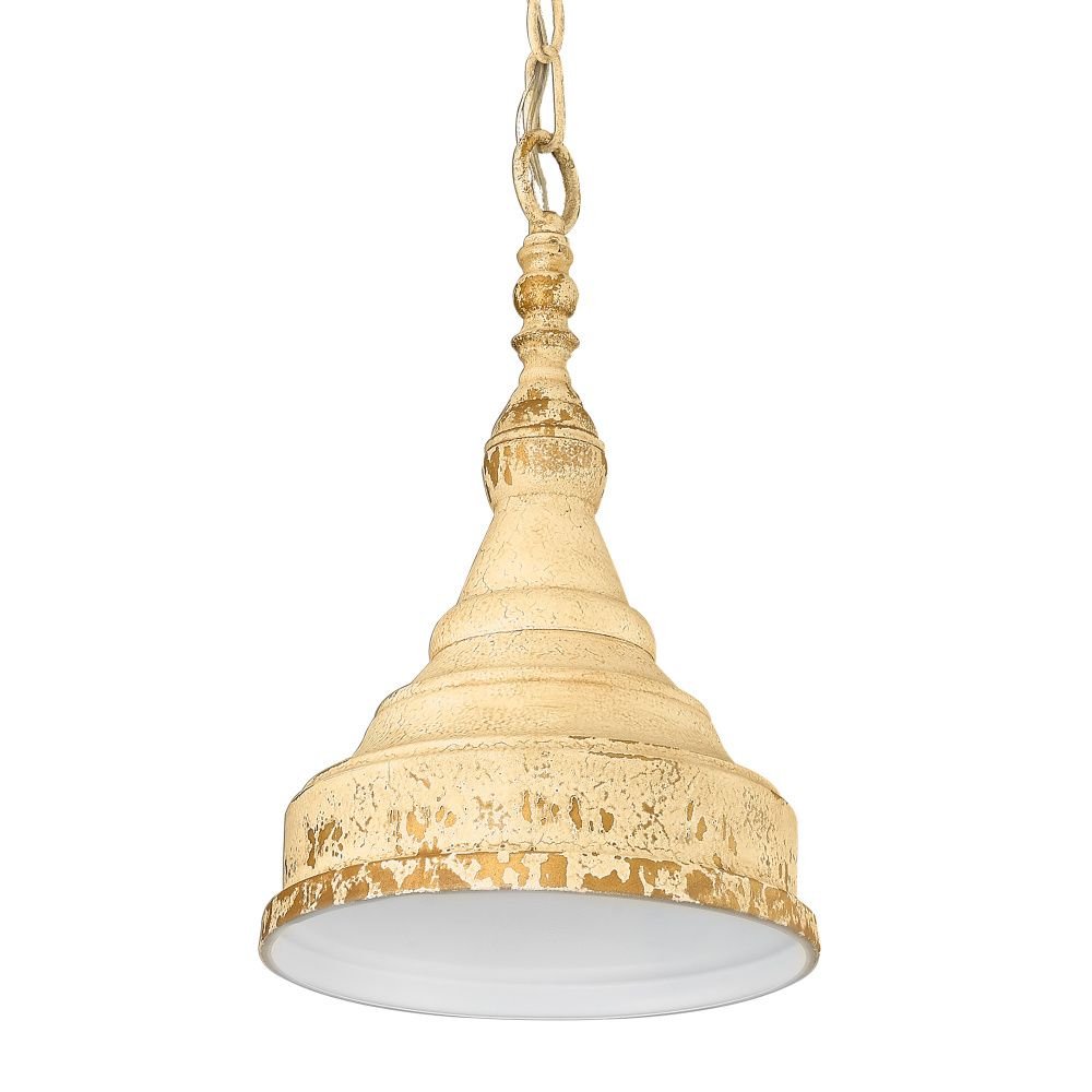 Introduce rustic elegance into your home with the Wry Lighting Wellsly 1-light Pendant in Aged Tuscan Stone. Featuring a metal shade and a unique finish, it creates a warm, inviting atmosphere. The aged Tuscan stone finish features a hand-applied ivory crackle and warm gold accents, offering a vintage charm that complements a variety of designs. The pendant’s design is ideal for delivering focused illumination while adding a touch of sophisticated decor. Perfect for kitchens, dining rooms, and entryways, this fixture is damp location rated, making it suitable for semi-enclosed spaces. With a sloped-ceiling compatibility and an adjustable height of 14.5" to 86.5", it fits seamlessly in any layout. Overall dimensions are 9.25"W x 14.5"H x 9.25"D, and it requires 1 E26 medium base bulb (not included), with a maximum wattage of 100. Enhance your space with this stylish pendant that melds comfort and quality, making it a standout piece in any room.