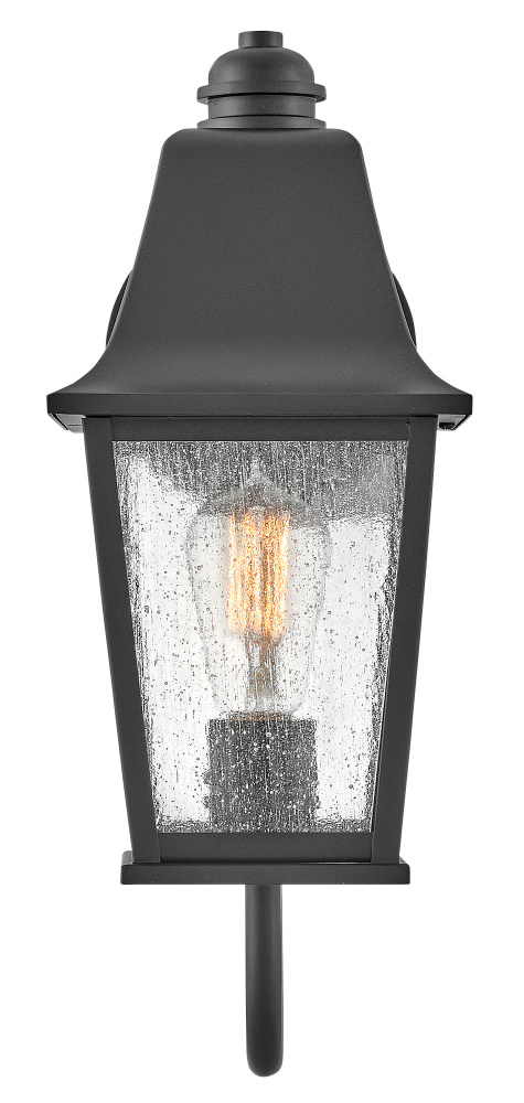 Effortlessly elegant, Kingston embraces traditional features and visual intrigue to illuminate exterior spaces, while its sturdy aluminum construction ensures durability to withstand outdoor elements. The classic lantern design highlights an oversized soft sweeping roof and bottom arm, clean lines, and a Black finish. Kingston's removable hood allows for easy bulb replacement.