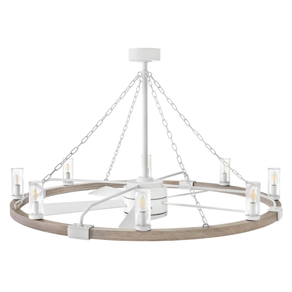 Fresh yet rustic, Sawyer will inject any outdoor living experience with the warm, cozy ambiance of an indoor setting. Available in variety of finish, accent, and blade combinations, Sawyer features durable composite materials and a versatile, wet-rated design. Operated by the HIRO control or WiFi compatible with the Hinkley App.