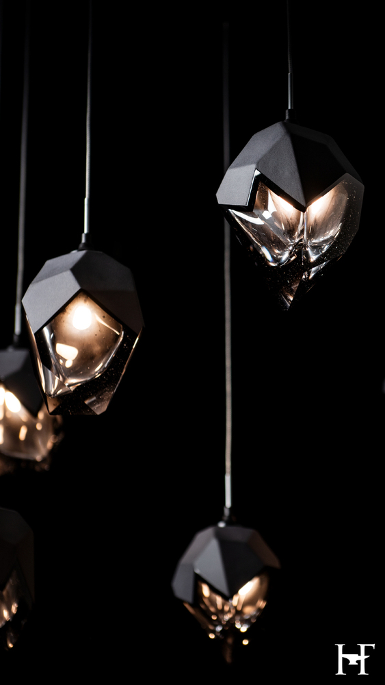 Ten small crystals, with a choice of either black or white matte outer glass layer, dance at the end of each cable guided by delicate metal tubes to its ideal drop. The mobile platform's playful nature is perfectly suited to the Chrysalis design. This artful display of crystals and light is highly-adjustable, allowing the right configuration for its space.