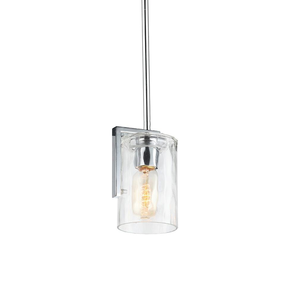 Pendant, 1 Light with Cylinder Clear Hammered Glass in Polished Chrome Finish