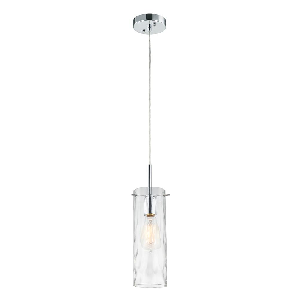 90" Cord - 1 Light Clear Hammered Cylinder Pendant with Clear Cord & Polished Chrome Finish