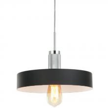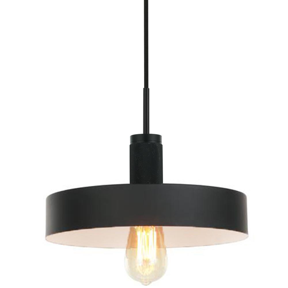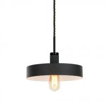 90" Cord - 1 Light Modern Socket Cup & Black Flat Metal Shade with Black Cloth Cord & Black Finish