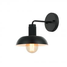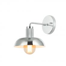 The Aurora wall light features a satin nickel metal drum shade that directs the light down, round canopy.