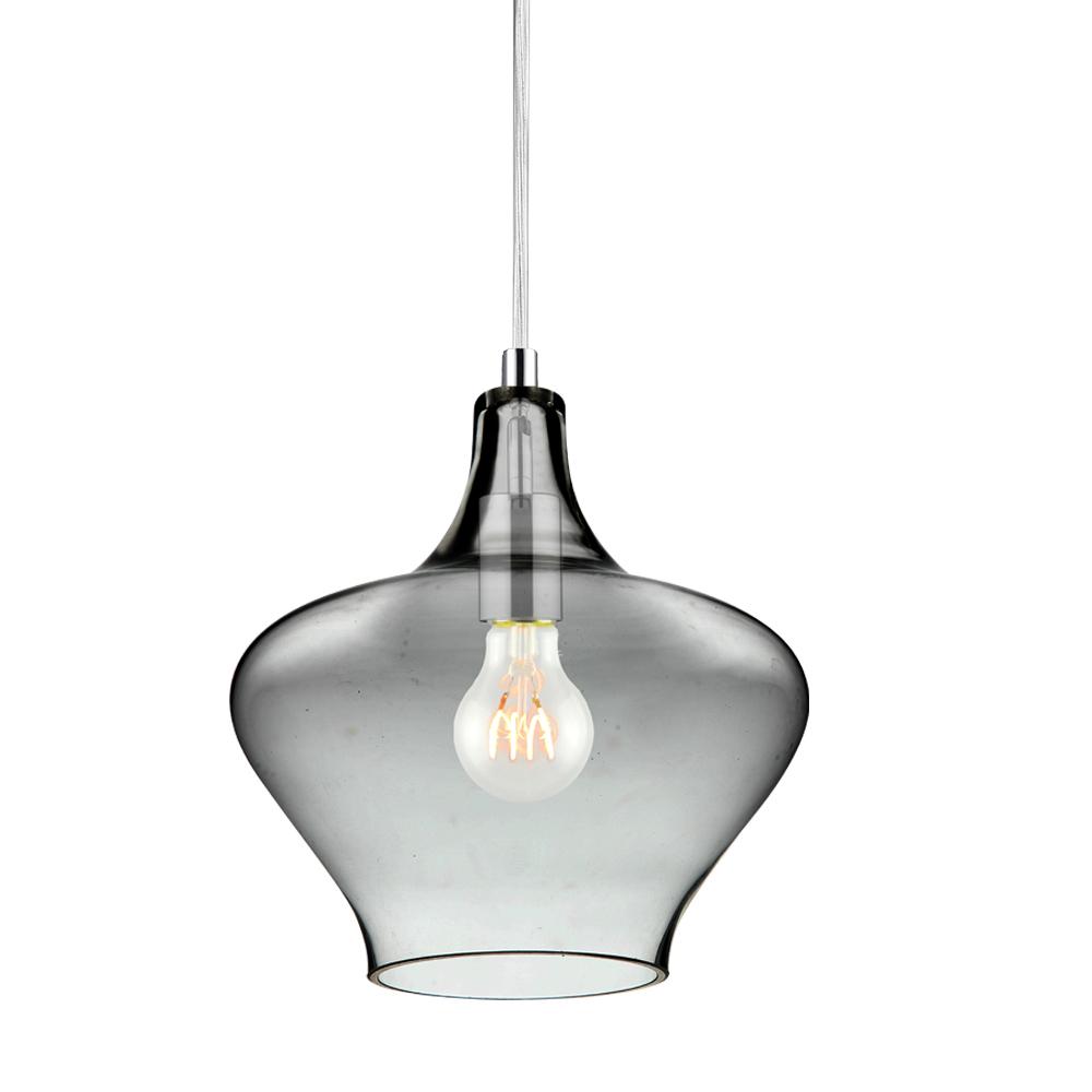 90" Cord - 1 Light Smoke Glass Pendant with Clear Cord & Polished Chrome Finish