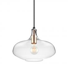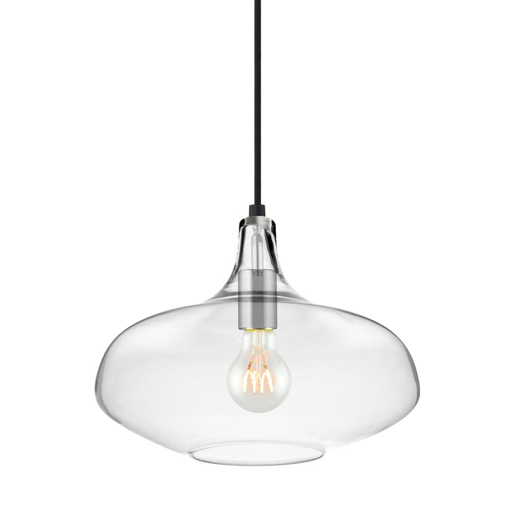 90" Cord - 1 Light Clear Glass Pendant with Black Cloth Cord & Black Finish