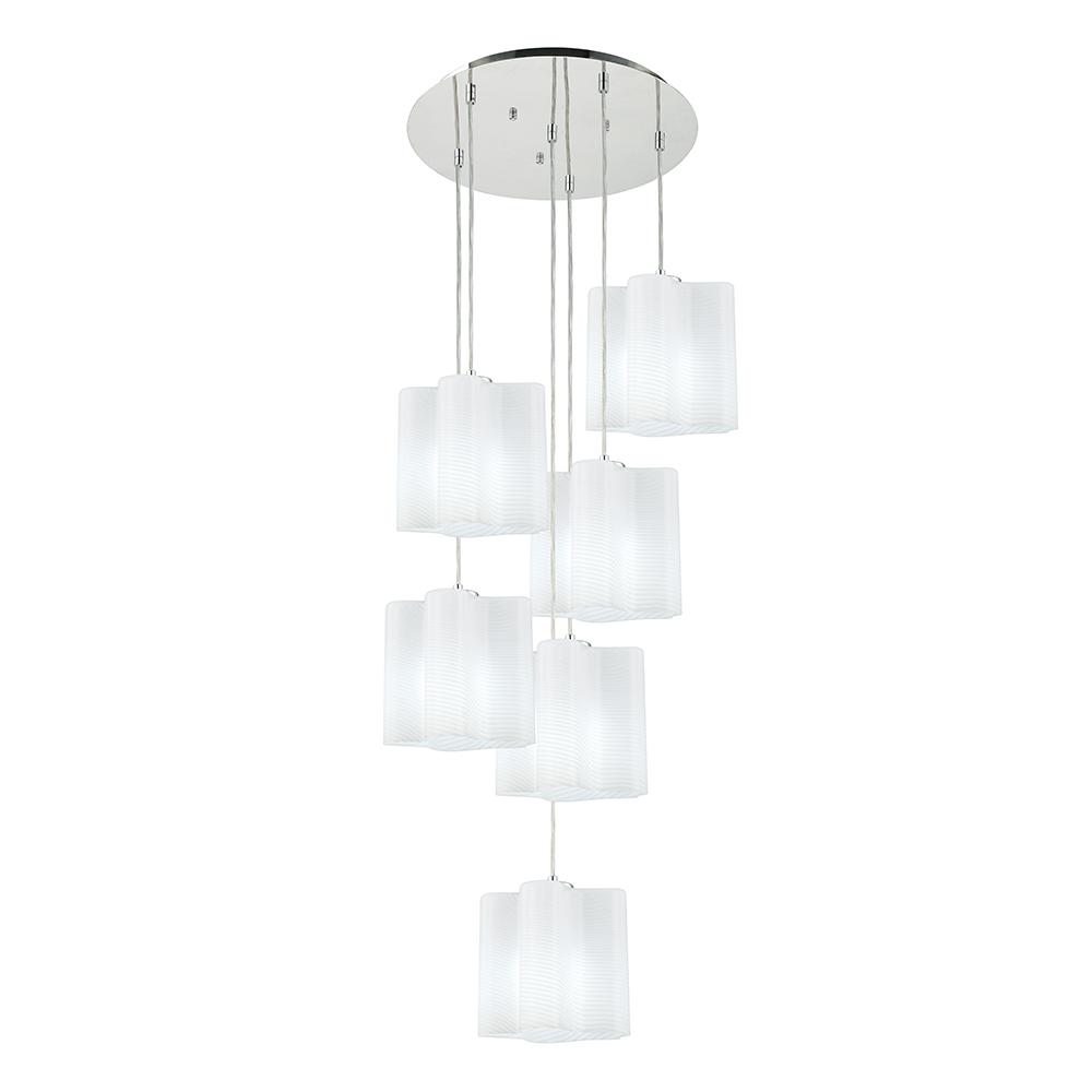 6 Light Pendant White Pattern Glass with Polished Chrome 16" Round Hardware
