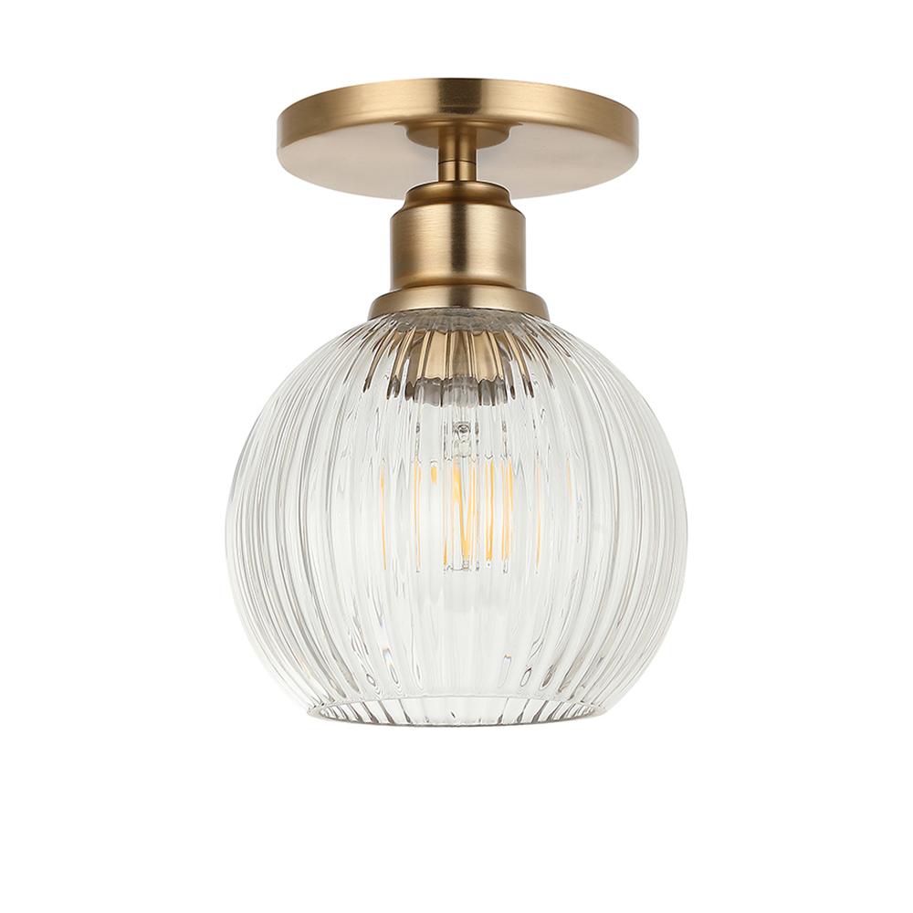 Pendant Light features Ribbed Clear glass shade, Champagne Bronze Hardware & Cord suspension.
