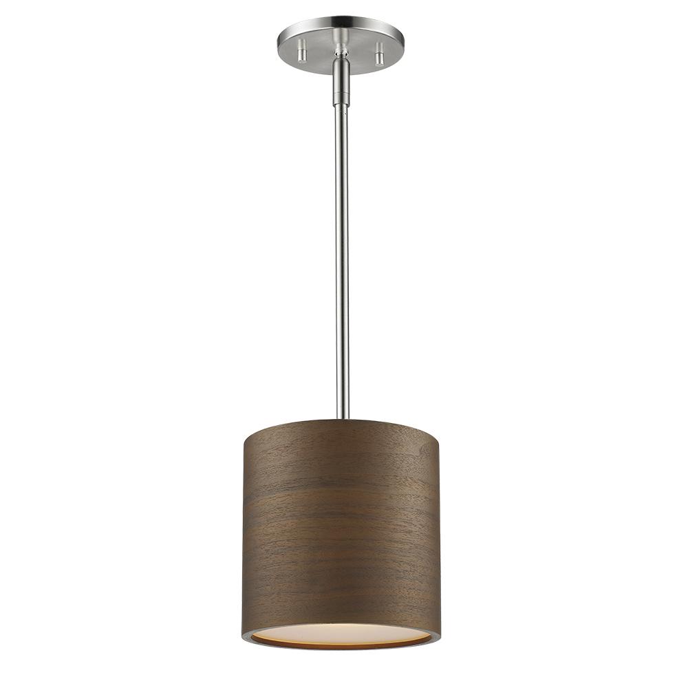 Pendant Shade / Faux Walnut Wood with Frosted Bottom Lens & Satin Nickel Hardware.