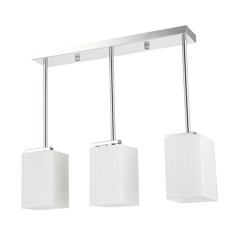 Pendant, Multi Drop 3 Light Square Satin White Weave Glass in Polished Chrome Finish