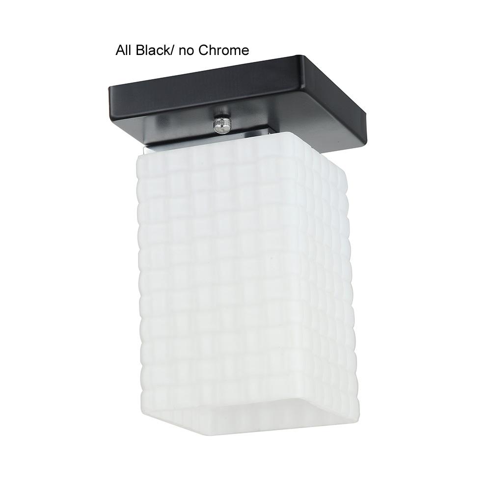 Semi-Flush 1 Light Square Satin White Weave Glass in Matte Black & Polished Chrome Finish