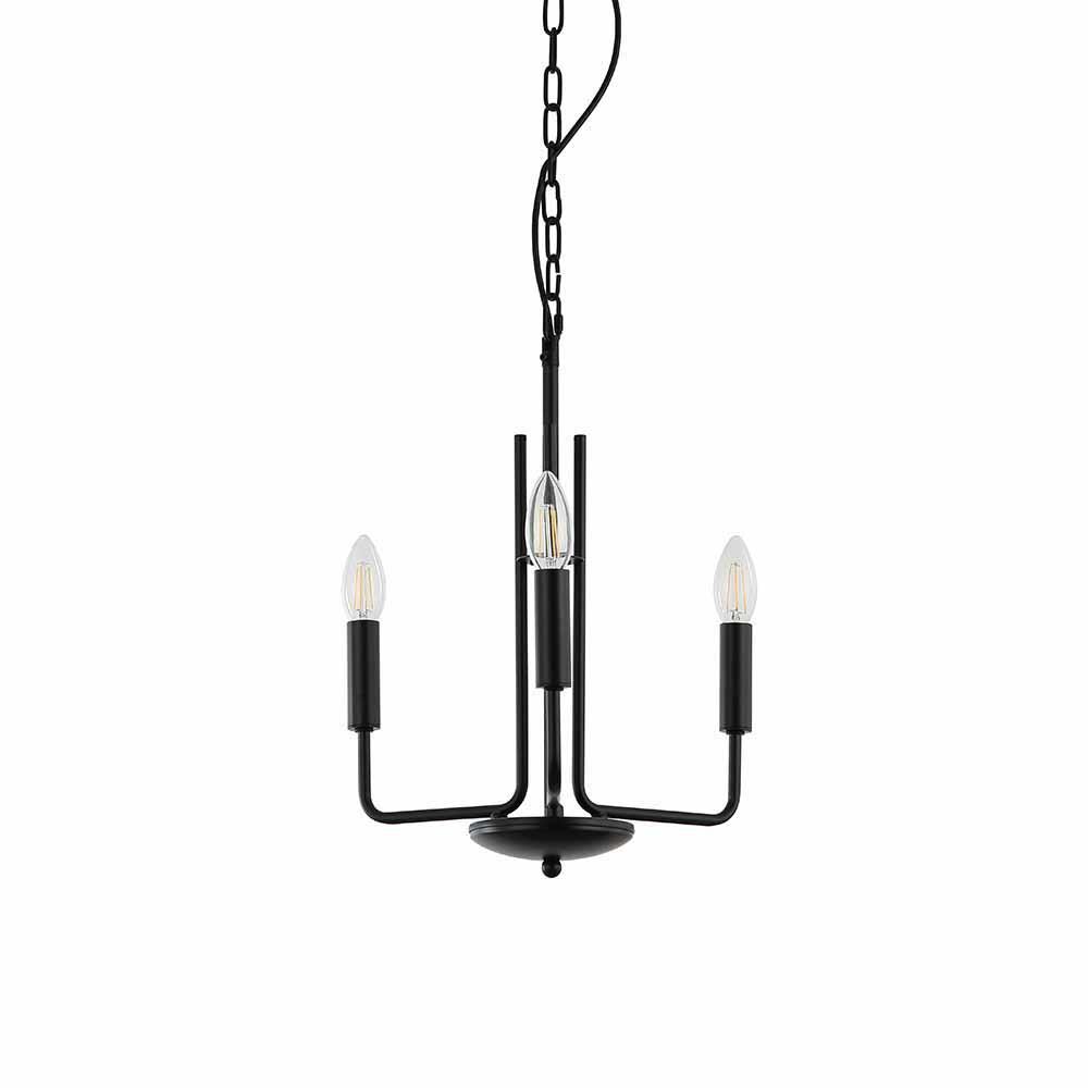 3 Light Black Chandelier with 72" Chain & 130" Black Wire