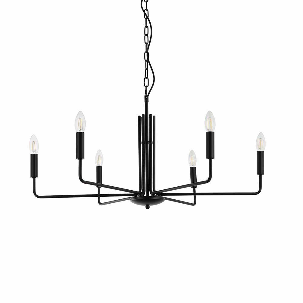 6 Light Black Chandelier with 72" Chain & 130" Black Wire