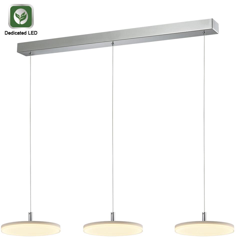 Dedicated 3 Light Bar LED Disc Chrome Pendant Light with White Acrylic Lens