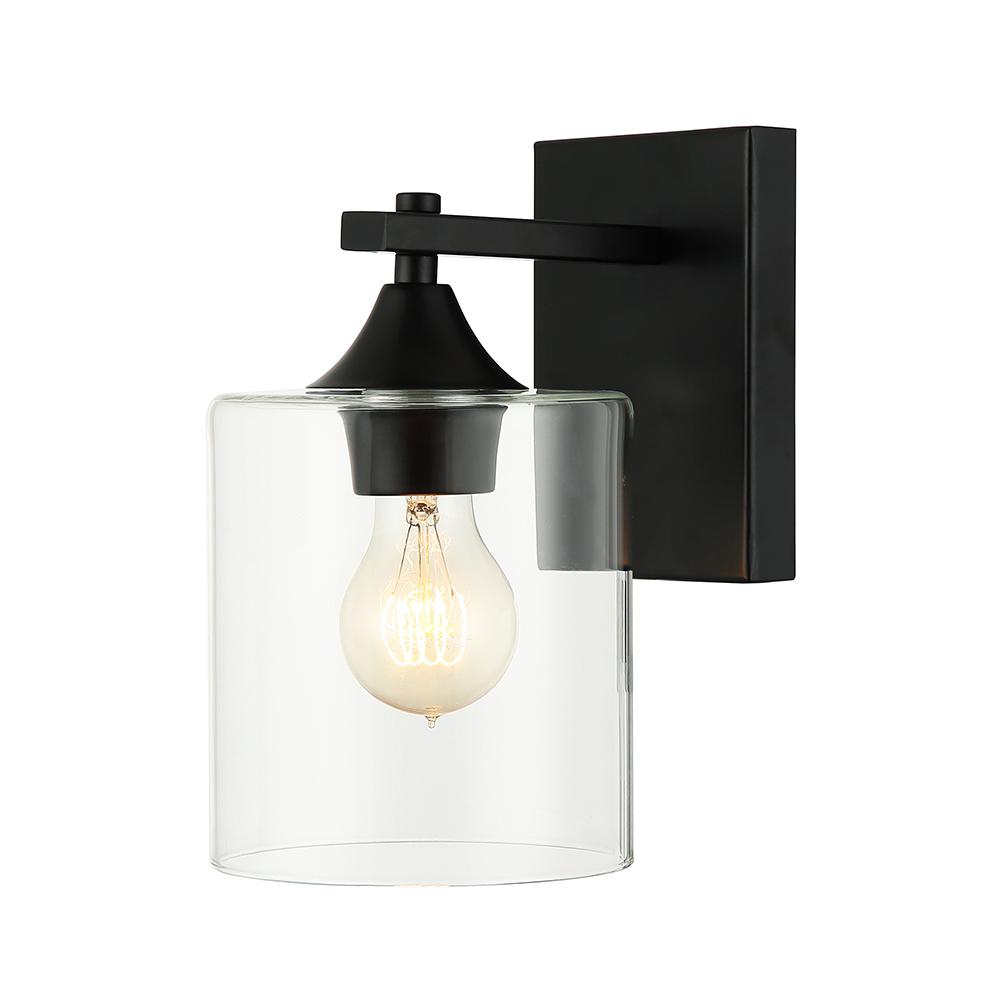 Wall sconce with Clear glass shade in Black Finish, can be installed up or down.
