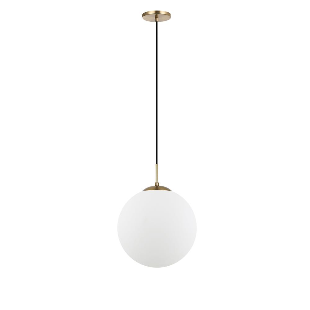1 Light Pendant / Satin White Globe Shade with Black Cloth Cord in Champagne Bronze Finish.