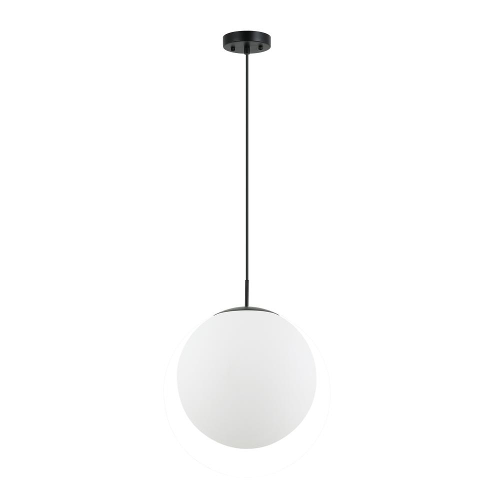 1 Light Pendant/ Satin White Globe Shade with Black Cloth Cord in Black Finish.