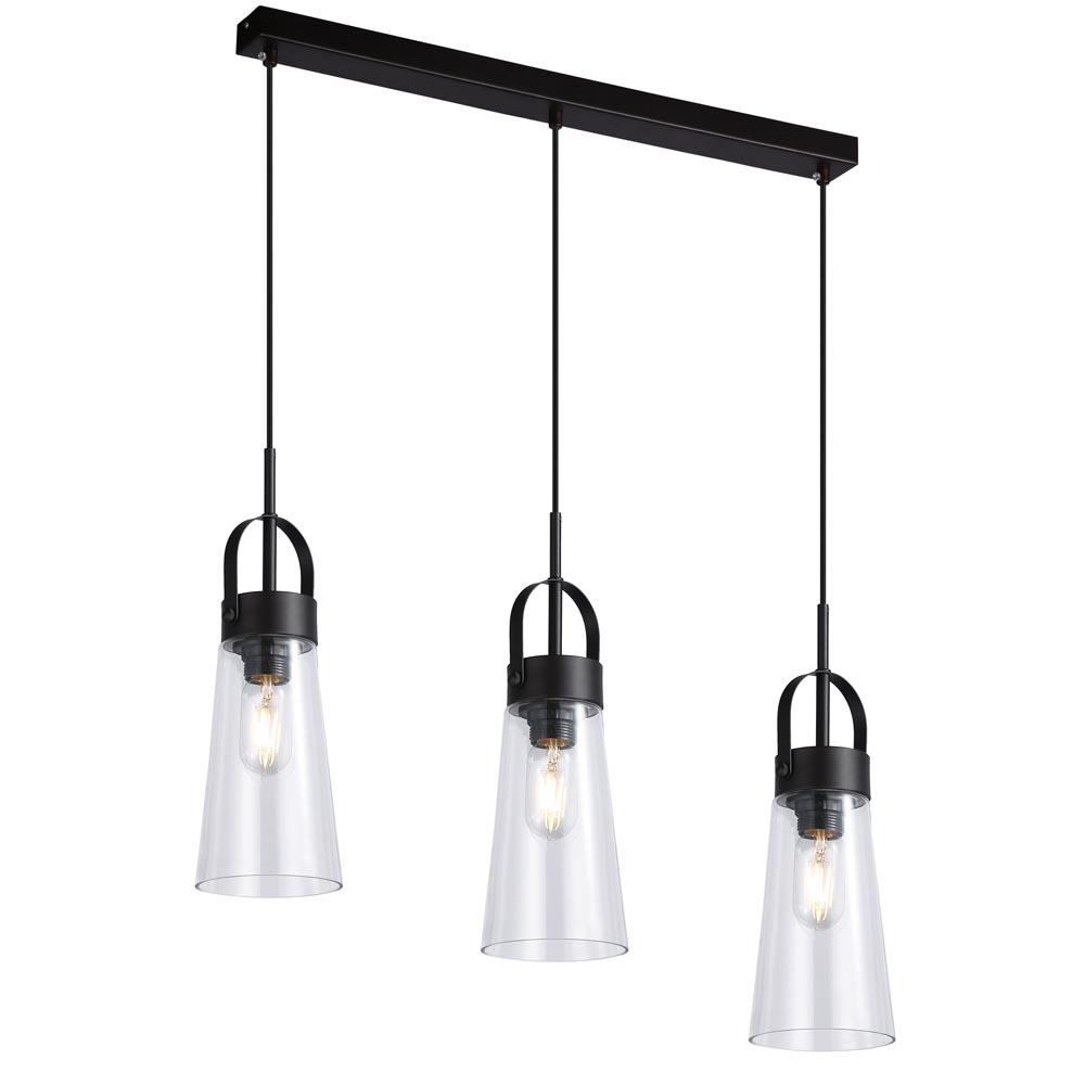 30" length Canopy - 3 Light Pendant with Clear Glass shade, black cord & canopy.