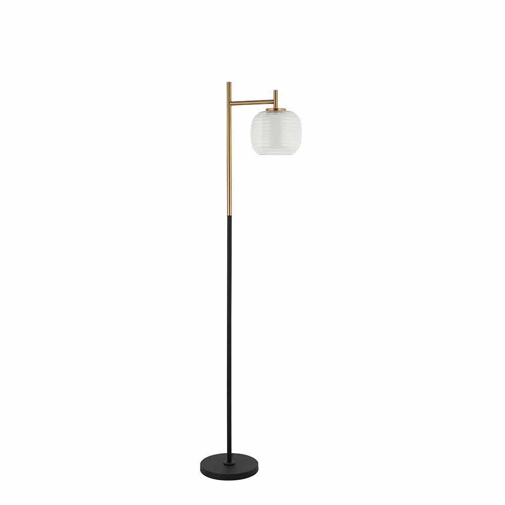 Floor Lamp with Clear Ribbed Cylinder Outer Glass & Satin White Inner Glass in Black/Aged Brass Finish with 72" Cord & Plug