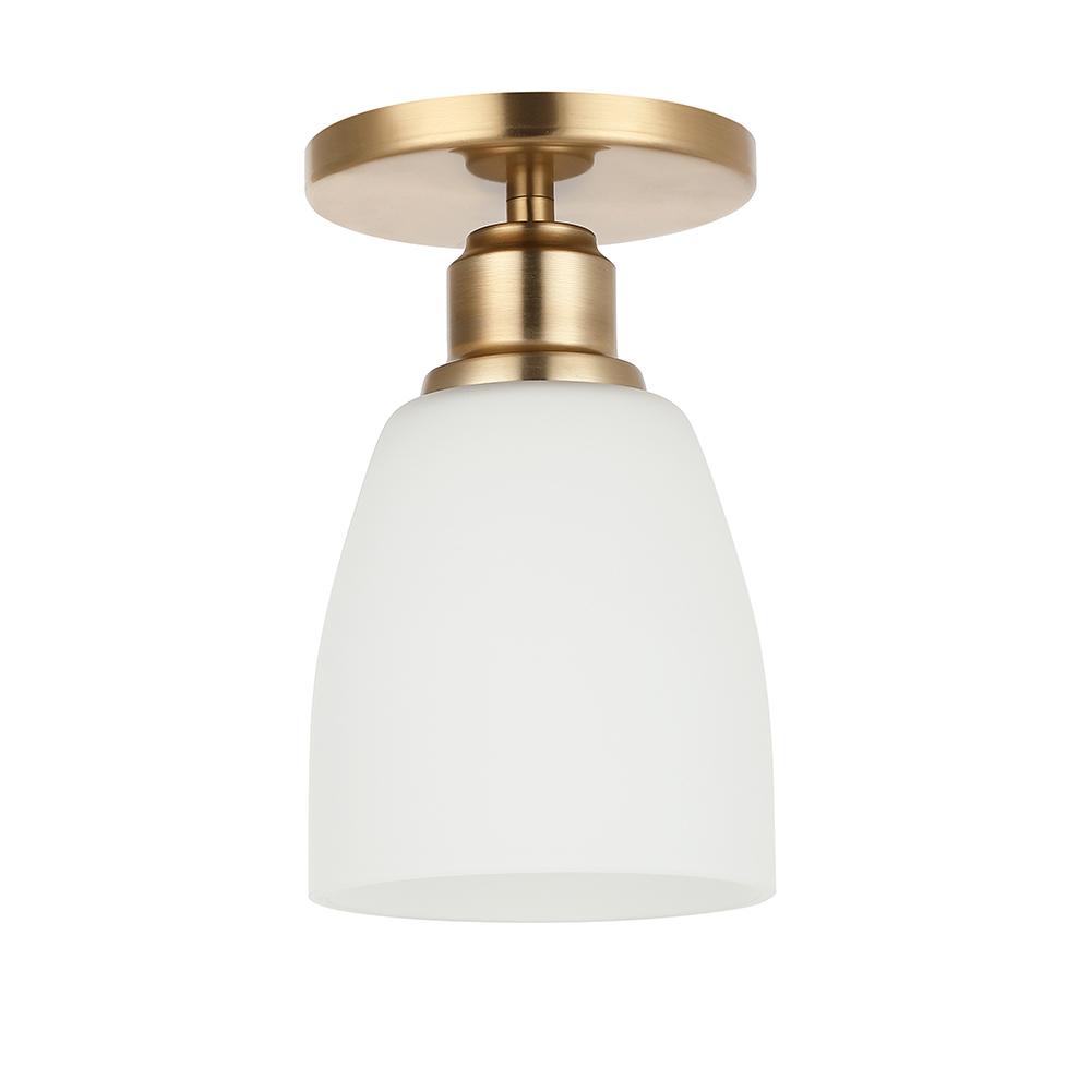 Flush mount with Satin White glass shades in Champagne Bronze Finish.