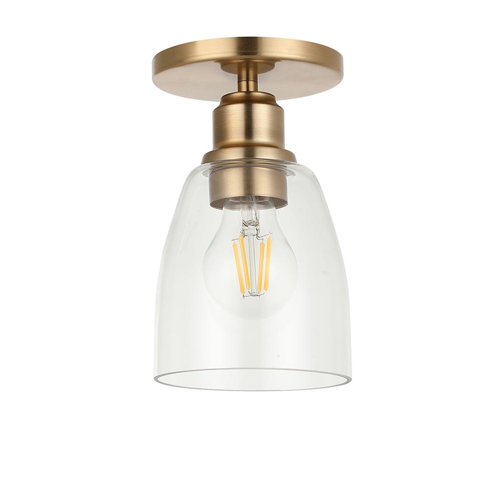 Flush mount with clear glass shades in Champagne Bronze Finish.