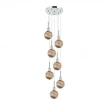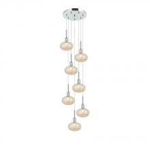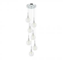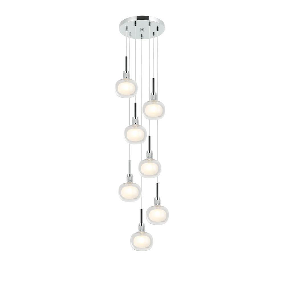 10" dia. Canopy with 5 Pendant 5" dia. Clear/Frost Glass in a Polished Chrome finish with 96" Clear Vinyl Cord. Artisan Hand Blown Glass, each piece crafted with Care.
