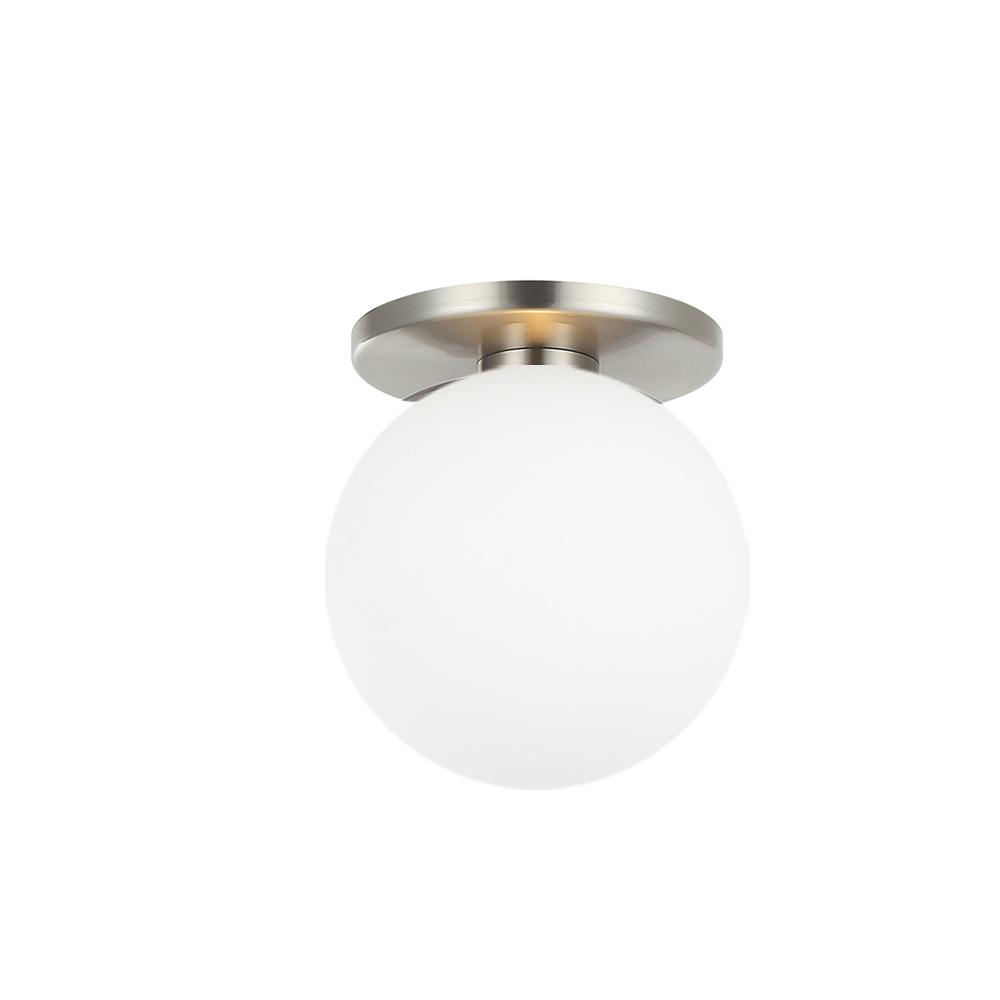 Wall or Ceiling Mount with 4.75" dia. White Globe Glass in a Polished Chrome finish. Artisan Hand Blown Glass, each piece crafted with Care.