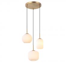 16" dia. Canopy - 3 Pendants with White Ribbed Cylinder, Drum & Globe Glass in Black Finish with Black Cord