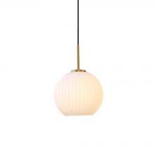 Pendant with White Ribbed Globe Glass in Satin Nickel Finish with Clear Cord