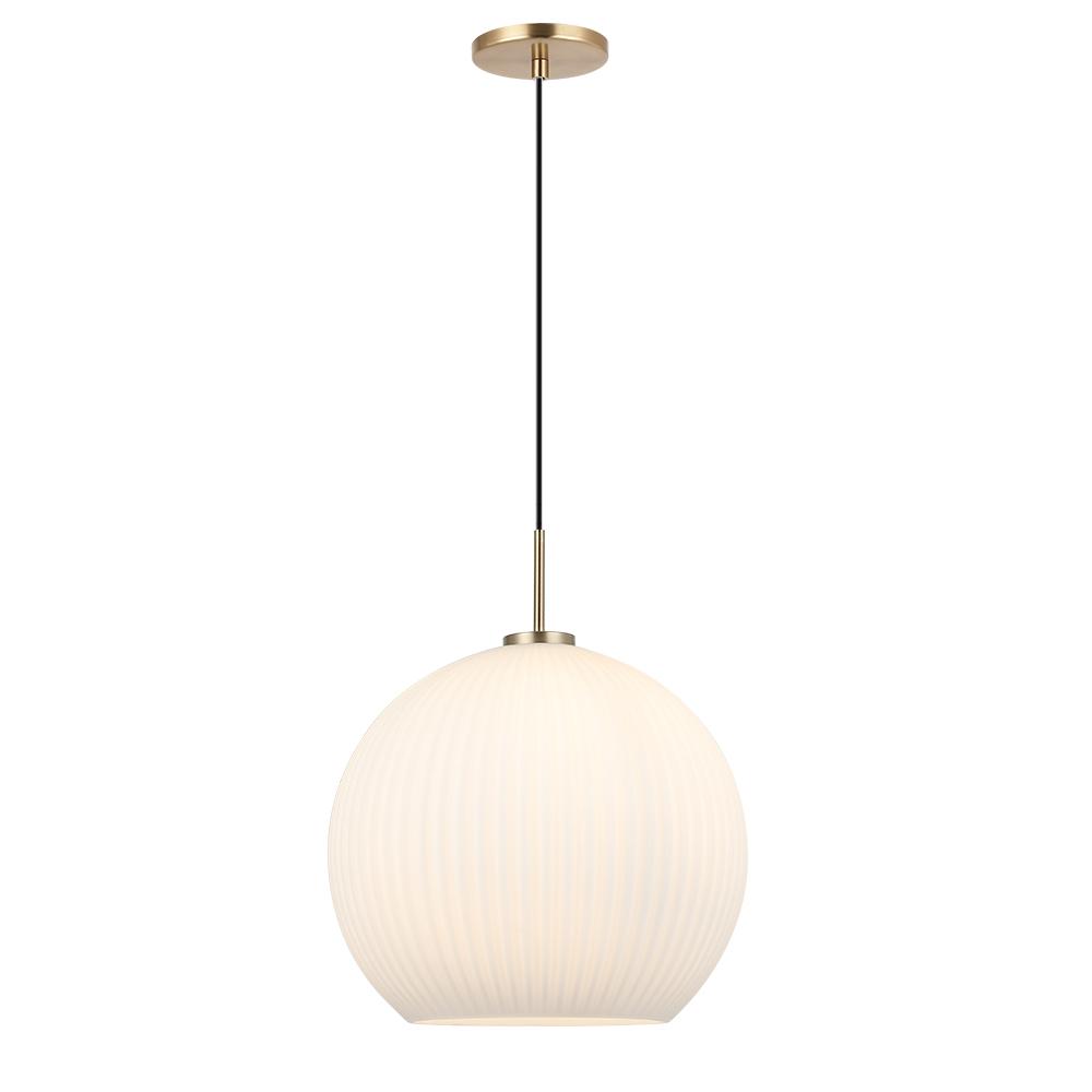 Pendant with White Ribbed Globe Glass in Champagne Bronze finish with Black Cloth Cord.