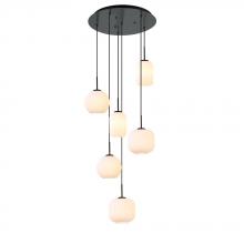 20" dia. Canopy - 6 Pendants with White Ribbed Cylinder, Drum & Globe Glass in Aged Brass Finish with Black Cord