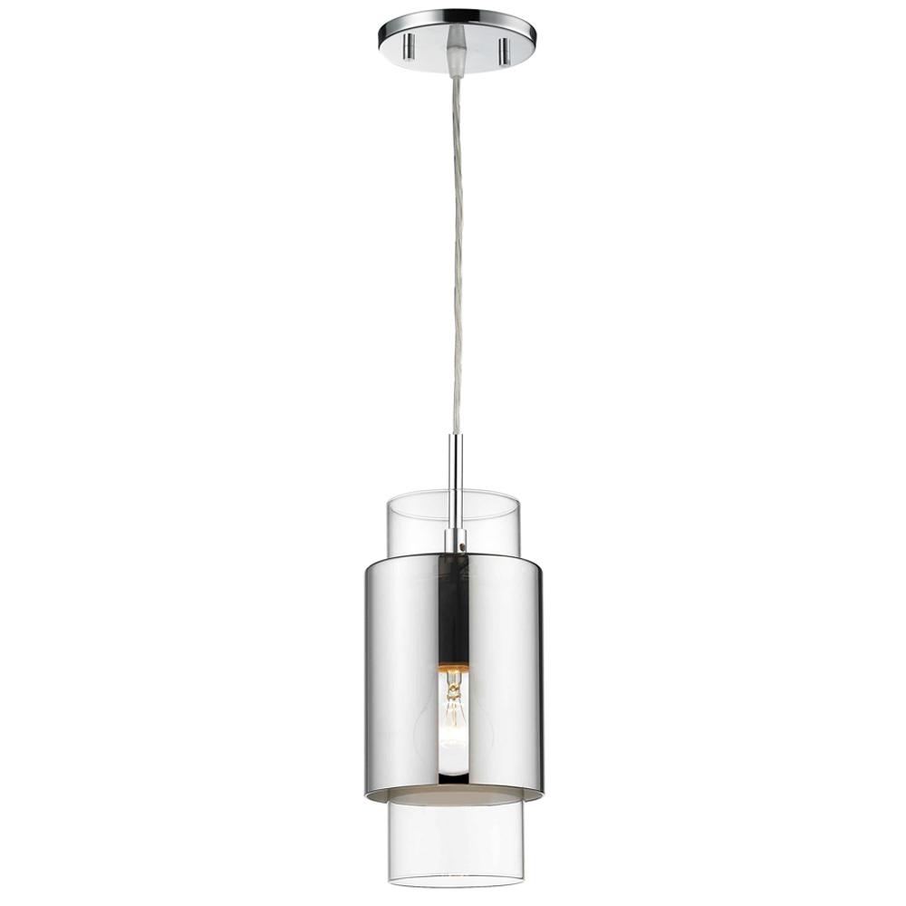 Modern Mini-Pendant Light with Chrome Outer & Clear Inner Glass & Polished Chrome Hardware