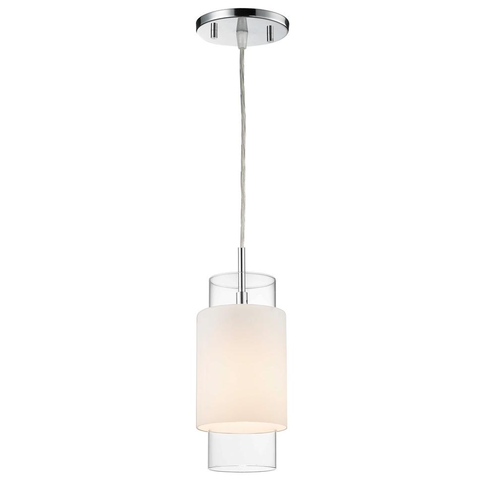Modern Mini-Pendant Light with White Outer & Clear Inner Glass & Polished Chrome Hardware