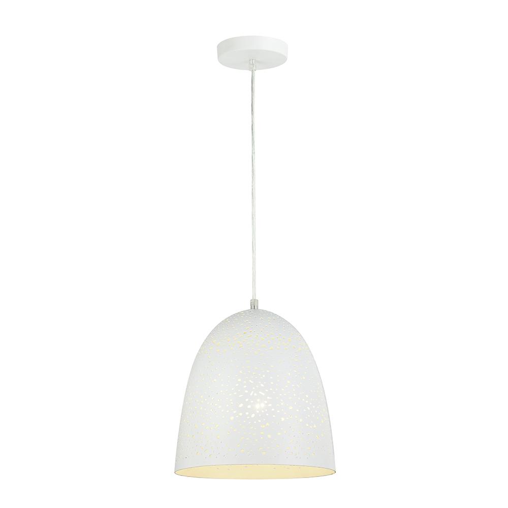 Small Pendant White Corrosion Perforated Dome with Clear Cord & White Hardware.