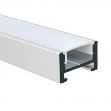 Surface Mounted LED profile to achieve a hidden light source for Kitchens / Bathrooms/Hospitality, Under Cabinet, Shelf or Cove Applications. White Acrylic Lens in Black Aluminium Finish. (Ships with 1 set of end caps & 2 spring clips for installation per meter)