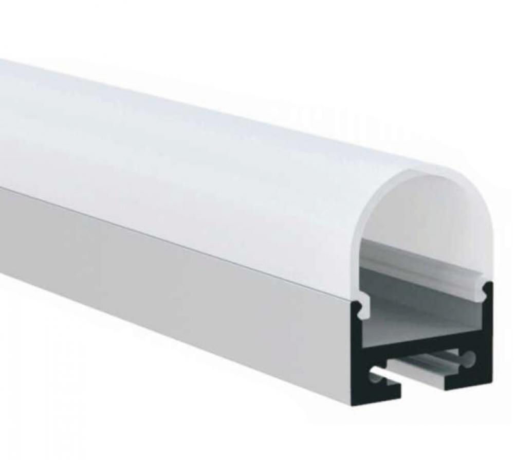 Surface Mounted LED profile to achieve a hidden light source for Kitchens / Bathrooms/Hospitality, Under Cabinet, Shelf or Cove Applications. White Acrylic Lens in Black Aluminium Finish. (Ships with 1 set of end caps & 2 spring clips for installation per meter)