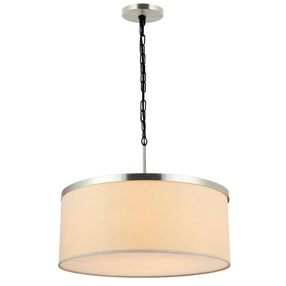 Chain Suspension Pendant Shade / Natural Linen with White Fabric Bottom Lens & Satin Nickel/Black Hardware.