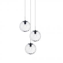 3 Light 10" Dia. Canopy - Clear Swirl Glass Pendant in a Black finish with 96" Black Cloth Cord.