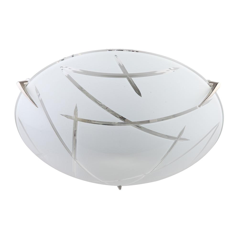 12" 2 Light Flush Mount Ceiling fixture with White Carved Glass & Satin Nickel Clips