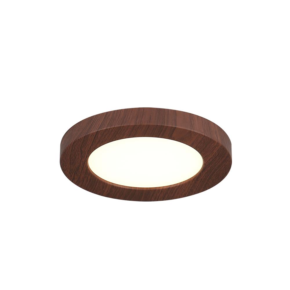 Dimmable - 5.375" diameter - Low Profile LED Wall or Ceiling Fixture in Faux Walnut Finish with White Acrylic Lens - Field Selectable 27K-30K-35K-40K-50K, Triac Dimming.