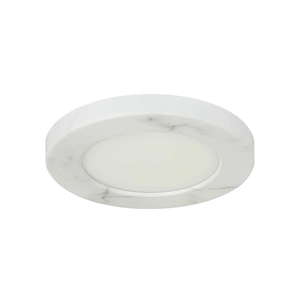 Dimmable - 5.375" diameter - Low Profile LED Wall or Ceiling Fixture in Faux Alabaster Finish with White Acrylic Lens - Field Selectable 27K-30K-35K-40K-50K, Triac Dimming.