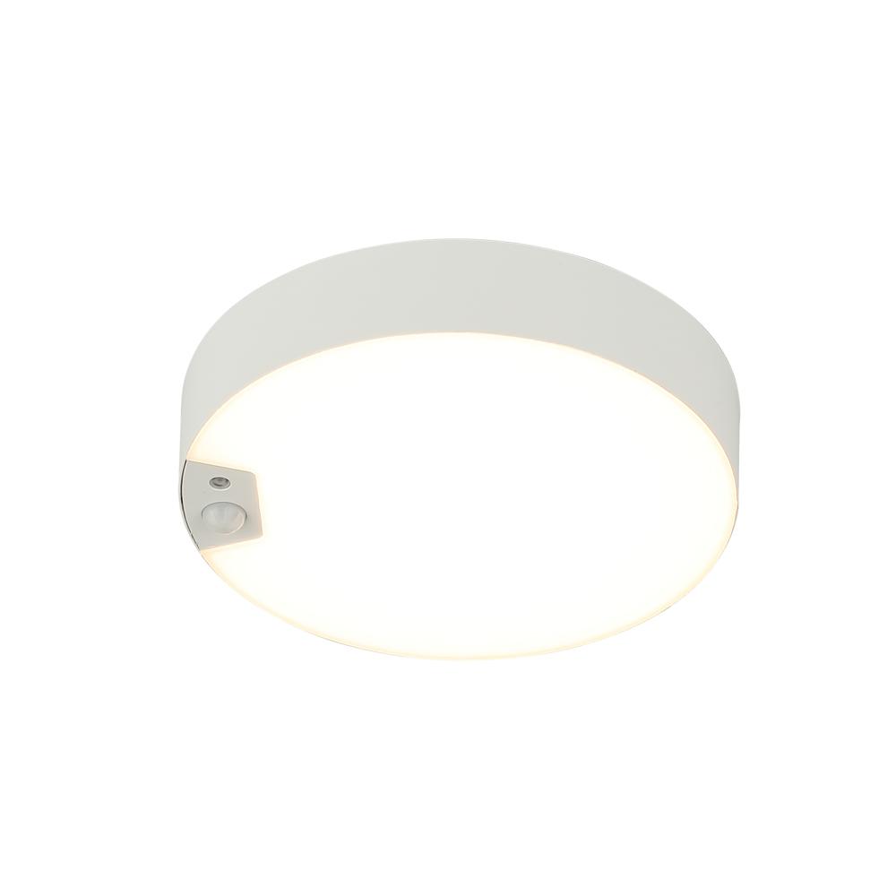 PIR Motion Sensor - Dimmable - 6.25" diameter - LED Wall or Ceiling Fixture in White Finish with White Acrylic Lens - Field Selectable 27K-30K-35K-40K-50K, Triac Dimming.
