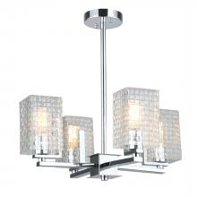 Chandelier, 4 Light Square Clear Weave Glass in Aged Brass Finish
