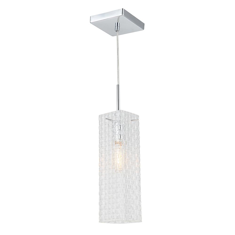 90" Cord - 1 Light Clear Weave Square Pendant with Clear Cord & Polished Chrome Finish